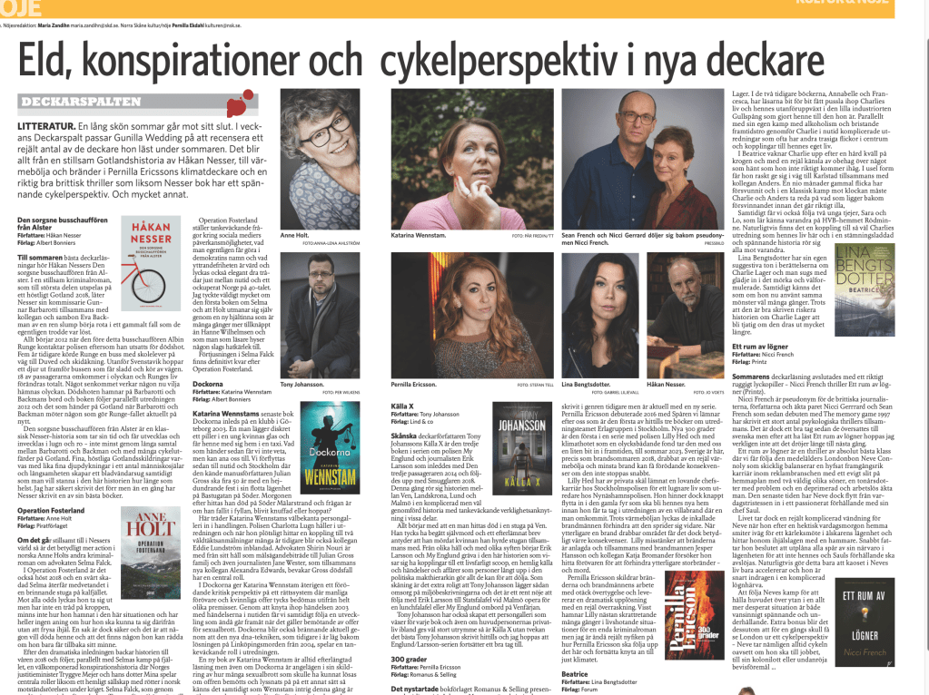 20200823 Eld och konspirationer i nya deckare (Skånska Dagbladet, recension Källa X)